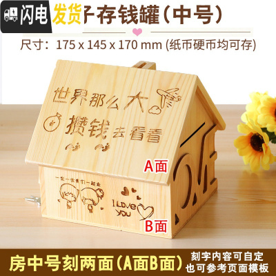 三维工匠防摔木存钱罐创意储钱罐儿童储蓄罐情人节生日送女友男生朋友 房中号[刻二面]+[配锁]