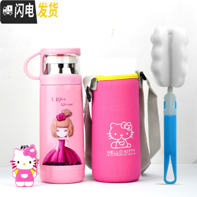 三维工匠儿童卡通保温杯可爱小学生不锈钢保温水壶便携带盖水杯子定制刻字 350粉姑娘+杯套+礼品