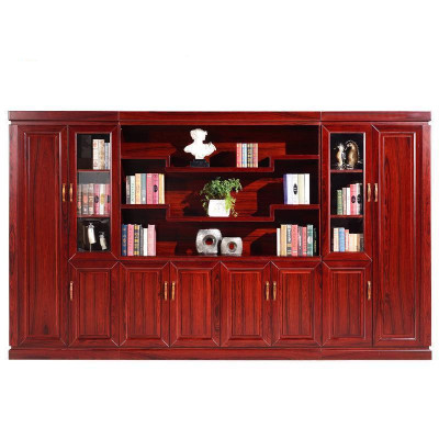 汐岩办公家具 落地实木贴皮酸枝红文件柜 家用书柜 老板柜 3685