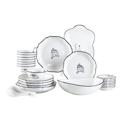 顺祥新梦想32头 碗 碗碟套装 陶瓷碗盘子家用 釉下彩格调餐具套装 苏宁自营