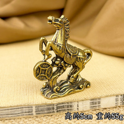 实心黄铜马到成功小摆件进宝站立铜马桌面摆件马上有钱铜饰品