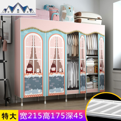 简易衣柜布衣柜钢管加粗加固收纳挂衣橱布艺组装钢架家用卧室柜子 三维工匠收纳柜