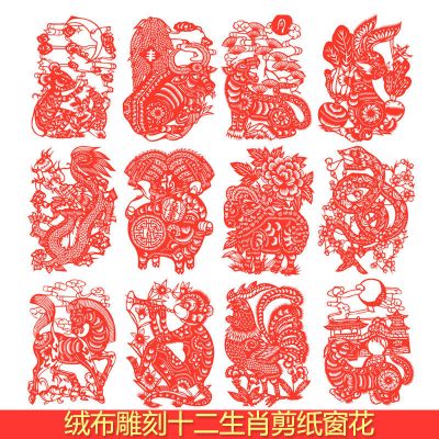 维诺亚十二生肖剪纸窗花学生作业幼儿园12生肖送老外礼物中国风传统手工