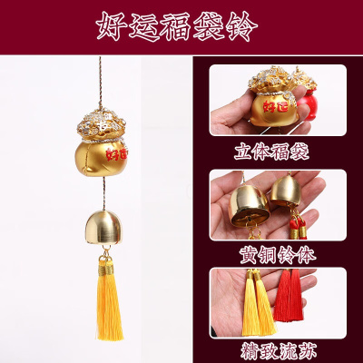 铜风铃挂饰室内招财福袋店铺门铃门饰铜铃铛挂件创意饰品进宝钱袋