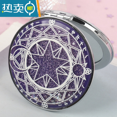 敬平卡通小镜子迷你便携女生甜美可爱圆镜创意随身流沙化妆镜学生礼品 魔法阵便携式用镜