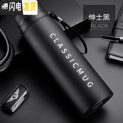 三维工匠大容量保温杯男户外不锈钢水壶1000车载304过滤茶杯子定制礼品 黑色1100