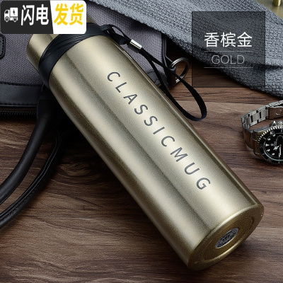 三维工匠大容量保温杯男户外不锈钢水壶1000车载304过滤茶杯子定制礼品 本色500