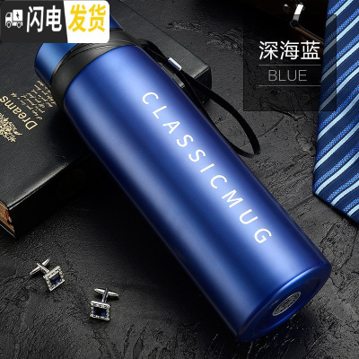 三维工匠大容量保温杯男户外不锈钢水壶1000车载304过滤茶杯子定制礼品 蓝色1100