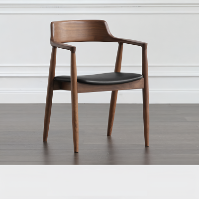 洛来宝会议靠背椅洽谈椅 胡桃木 黑色牛皮