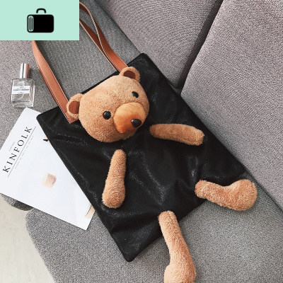 韩版毛绒小熊玩偶单肩包2020秋夏新款可爱卡通大容量手提托特女包NEW LAKE女士单肩包