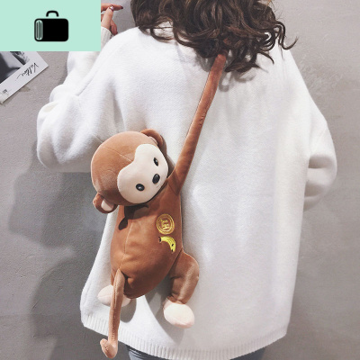卡通毛绒斜挎包包女2019新款个性可爱小猴子单肩包ins网红玩偶包NEW LAKE 咖啡色女士单肩包