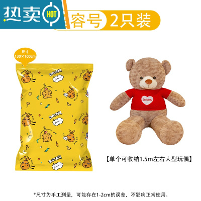 敬平大型玩偶收纳袋抽气真空压缩袋毛绒玩具特大号娃娃整理袋收纳袋子 [黄色]2只超容号❤1.5m大熊 无泵