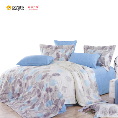 吉祥三宝家纺 全棉斜纹印花四件套全棉床品套件床上用品床单被套—凡华一叶 浅灰色 2.0*2.3m