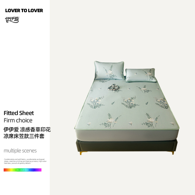 伊伊爱 凉感香草印花凉席床笠款三件套