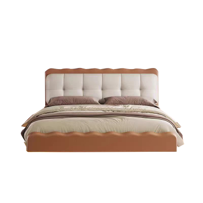 法式复古奶油风主卧室现代简约波浪双人床1.8米家用带灯悬浮床皮艺床