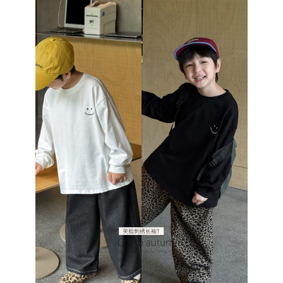 童酷男童秋款织里童装韩版笑脸印花中小童打底衫圆领儿童T恤