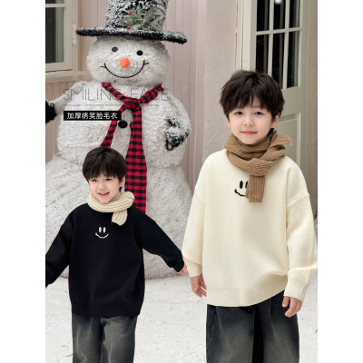 童酷儿童冬款湖州织里童装笑脸提花针织衫加厚圆领男童毛衣潮