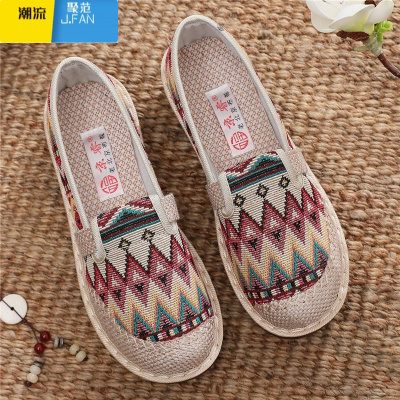 聚范老北京布鞋女新款透气田园风渔夫鞋中老年一脚蹬妈妈鞋单鞋