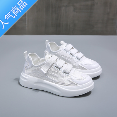 SUNTEK2023春夏新款网面小白鞋女ins透气薄款运动鞋魔术贴厚底休闲百搭