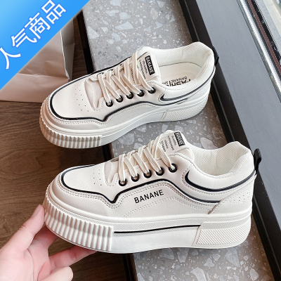 SUNTEK厚底增高小白鞋运动鞋ins潮2023春秋超火港风chic学生松糕单鞋女