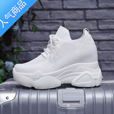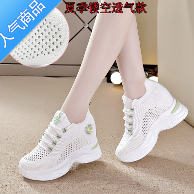 SUNTEK2023夏季新款10cm内增高女鞋透气小白鞋女网面厚底百搭休闲运动鞋