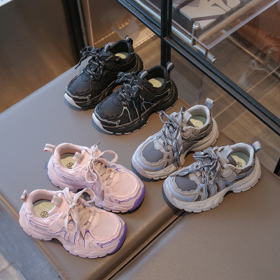 儿童鞋秋款个性男童防水皮面舒适老爹鞋女童学生跑步运动鞋潮
