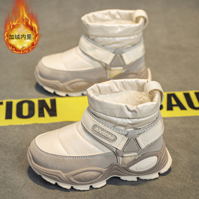 冬季新款加绒加厚高帮套脚雪地靴中大童男女同款休闲保暖棉鞋童鞋