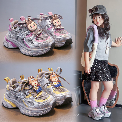 秋季新款儿童运动鞋女童休闲中大童鞋网面透气轻便学生跑步老爹鞋