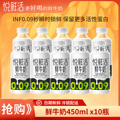 悦鲜活 鲜牛奶 450ml*10瓶新鲜顺丰冷链优质蛋白低温鲜牛奶瓶装巴氏奶营养早餐补钙