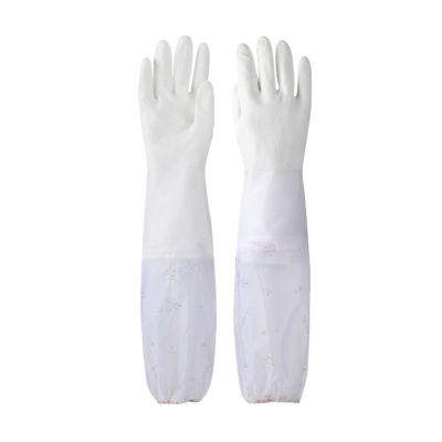 壹志冬季保暖家务手套清洁洗碗洗衣服手套厨房打扫护手加厚加绒加长款PVC非橡胶乳胶手套防滑防水耐用束口不滑落 荷叶边
