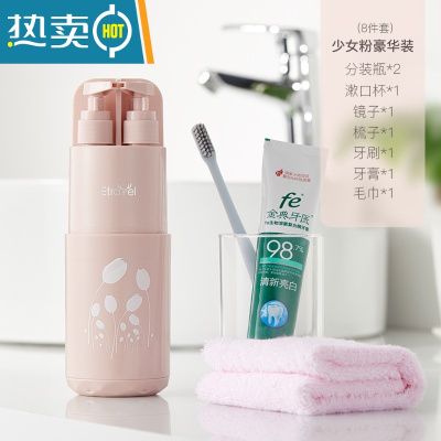 敬平旅行洗漱杯套装便携式男士出差牙刷杯多功能洗护收纳盒漱口杯女 少女粉豪华装