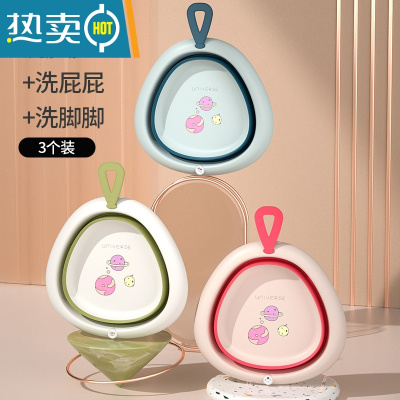 敬平3个装新生婴儿用品折叠洗脸盆三件套宝宝专用洗屁屁洗脚家用盆子