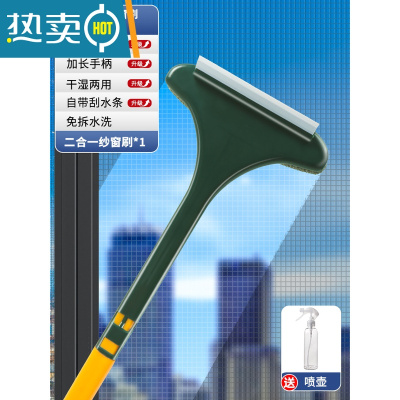 敬平纱窗清洗器免拆洗纱窗清洁刷洗窗纱网家用擦玻璃器沙窗擦窗器 二合一纱窗刷?黄绿+喷壶