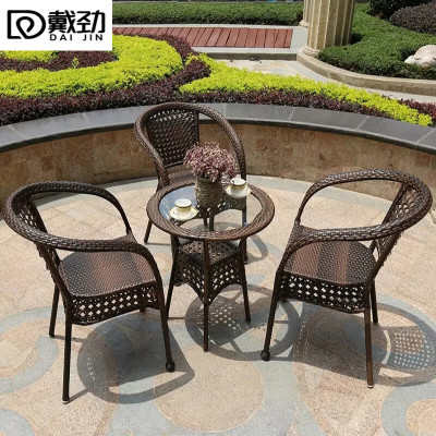 戴劲藤椅阳台桌椅室外庭院藤编椅子花园茶几藤椅组合3椅+60透明圆桌