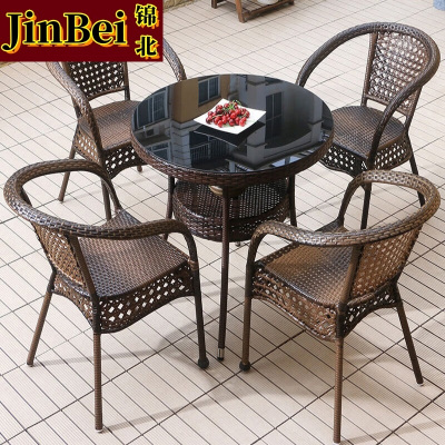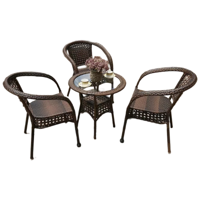 锦北藤椅阳台桌椅室外庭院藤编椅子花园茶几藤椅组合3椅+60透明圆桌