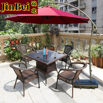 锦北藤椅阳台桌椅室外庭院藤编椅子花园茶几藤椅组合4椅+90方桌+地中海伞
