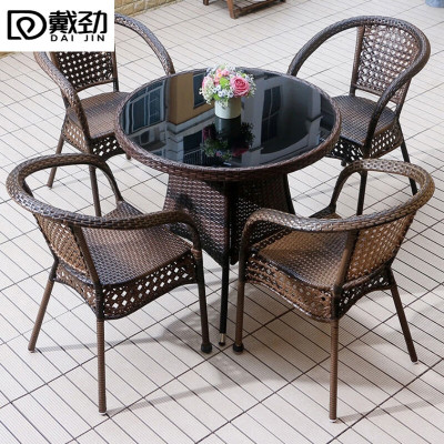 戴劲藤椅阳台桌椅室外庭院藤编椅子花园茶几藤椅组合 4椅+90编藤圆桌