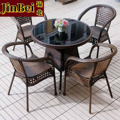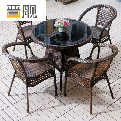 晋舰藤椅阳台桌椅室外庭院藤编椅子花园茶几藤椅组合4椅+60黑玻璃圆桌