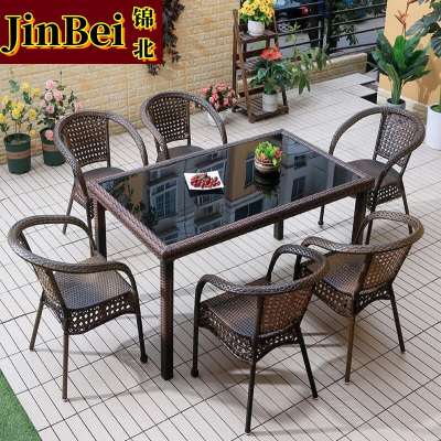 锦北藤椅阳台桌椅室外庭院藤编椅子花园茶几藤椅组合6椅+90*150直角桌