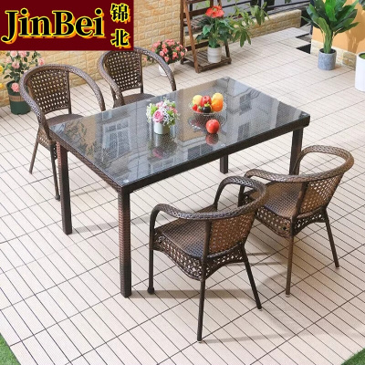 锦北藤椅阳台桌椅室外庭院藤编椅子花园茶几藤椅组合4椅+64透明玻璃方桌