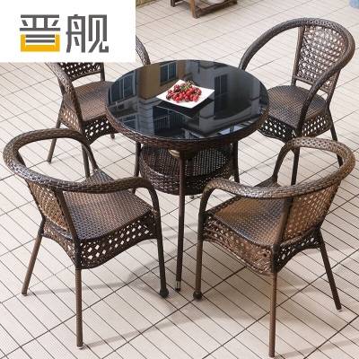 晋舰藤椅阳台桌椅室外庭院藤编椅子花园茶几藤椅组合 4椅+70双层圆桌