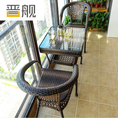 晋舰藤椅阳台桌椅室外庭院藤编椅子花园茶几藤椅组合2椅+64透明玻璃方桌