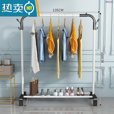 敬平毛巾架子落地晾架子免打孔挂网红置物架收纳架杆临时放衣服器 135cm-白[单杆双钩]-中晾晒架