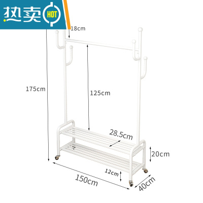 敬平衣帽架简易落地晾衣杆租房省空间晾晒挂衣服架室内床头挂衣杆带轮 白色长150高175配2.0轮子晾晒架