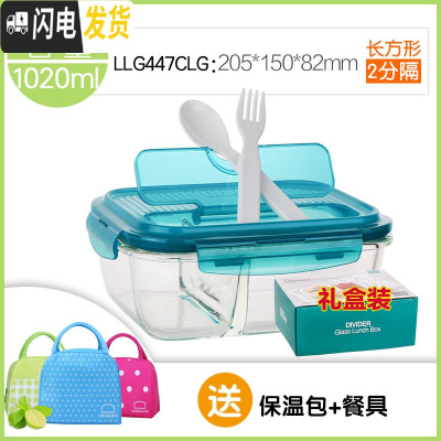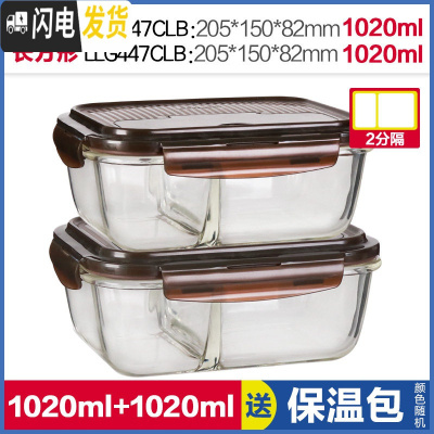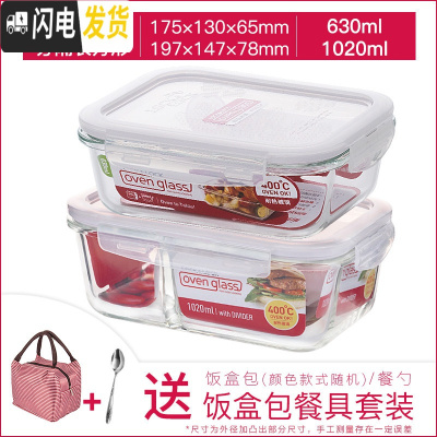 三维工匠玻璃饭盒女微波炉保鲜盒耐热玻璃分隔上班族便当盒密封碗 [新款]长1020(2分隔)