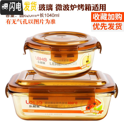 三维工匠耐热玻璃饭盒微波炉便当盒保鲜盒上班带饭加热饭盒带盖密封 琥珀色(长1040+圆620)