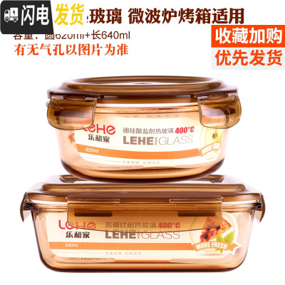 三维工匠耐热玻璃饭盒微波炉便当盒保鲜盒上班带饭加热饭盒带盖密封 琥珀色(圆620+长640)