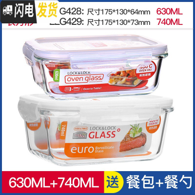 三维工匠旗舰店微波炉加热饭盒专用带饭玻璃碗保鲜盒上班族便当盒 长740+长630