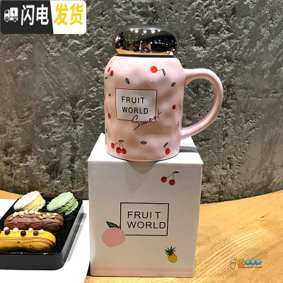三维工匠网红少女心马克杯樱桃西瓜男女学生情侣牛奶咖啡大容量带盖陶瓷杯 1666镜面盖水果杯粉樱桃单杯咖啡器具