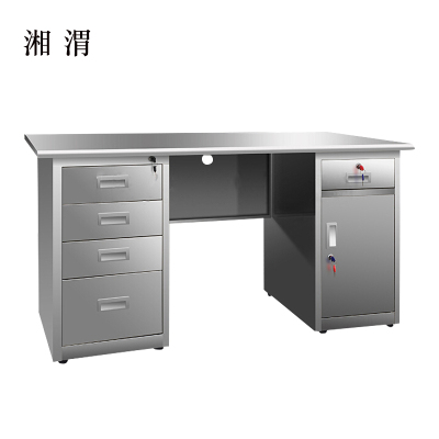 湘渭不锈钢桌办公桌车间工作桌带锁抽屉电脑桌201五斗一门1.4米